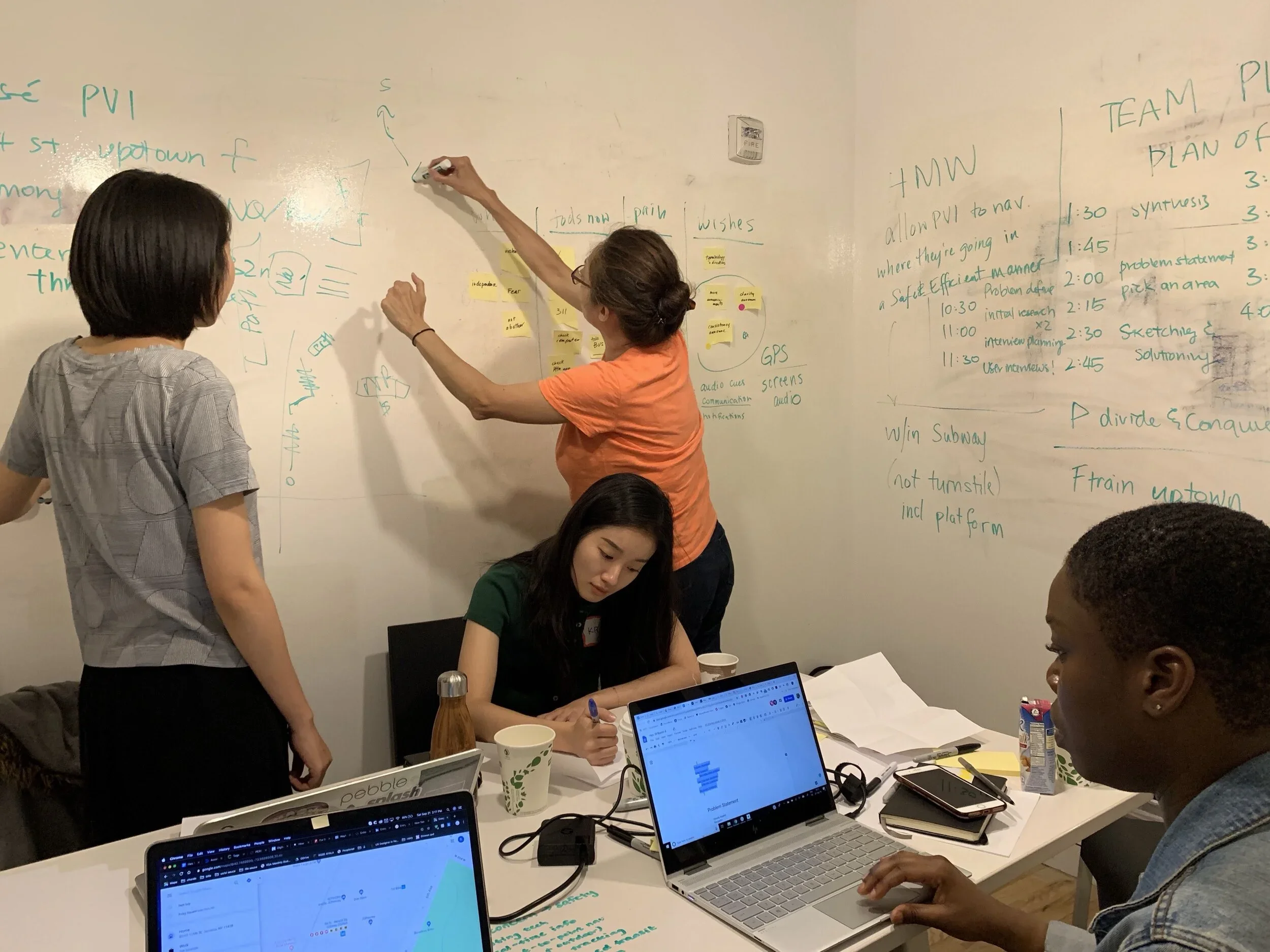 Other problem spaces that were tackled during this hackathon included unconscious bias and access to opportunities. My team concentrated our focus on accessibility. Being based in New York City, we addressed the ongoing issue regarding accessibility on the NYC subway system. While swapping stories, one of our team members shared,