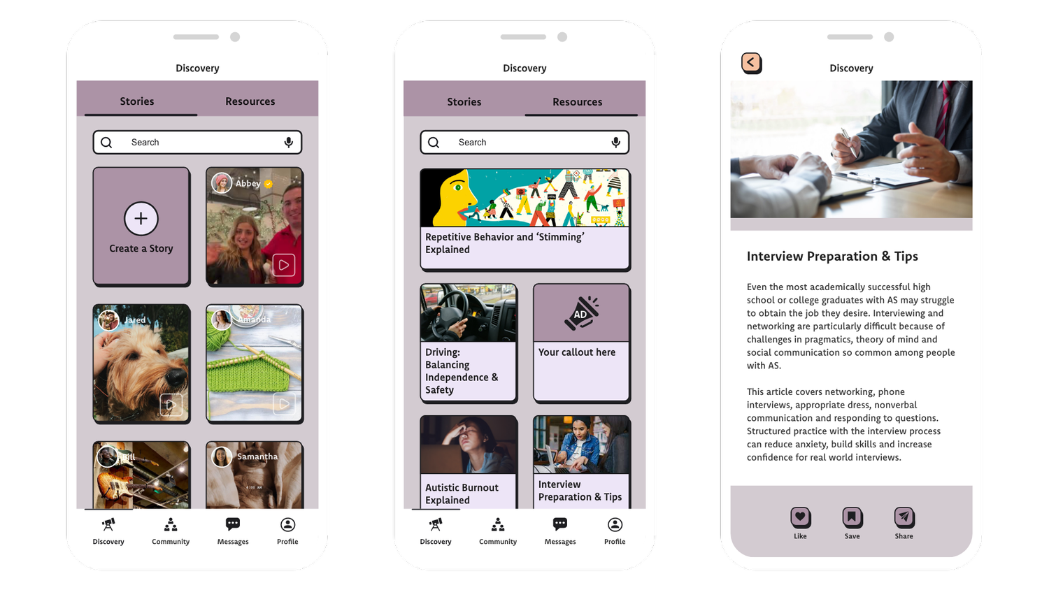 Users can access resources like articles with advice on how to handle certain situations as someone on the spectrum.