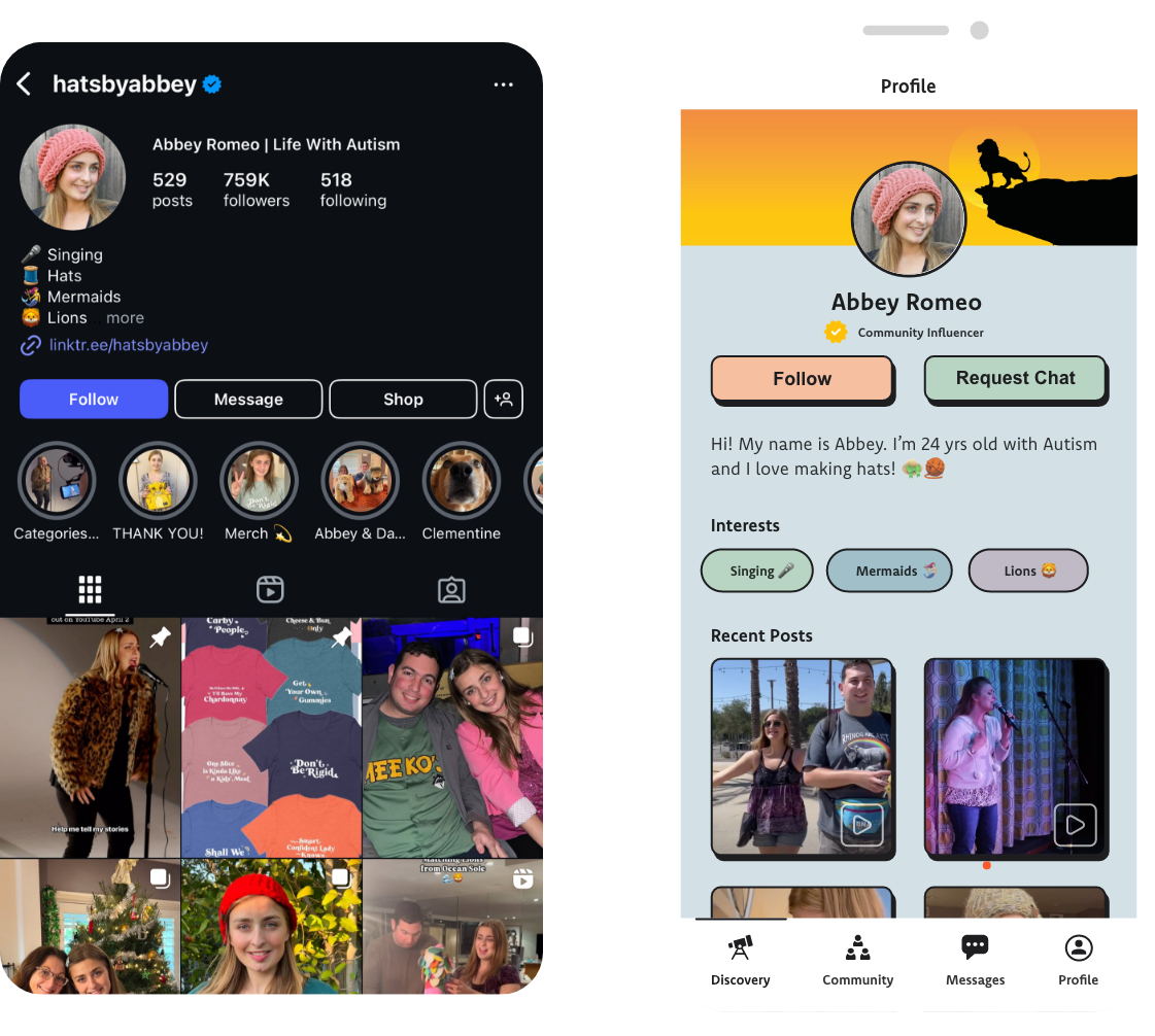 Well known members of the ASD community can be identified with a verified badge on their profile indicating they are a community trailblazer. Users can discover these profiles and see how others experience, overcome, and manage daily life.